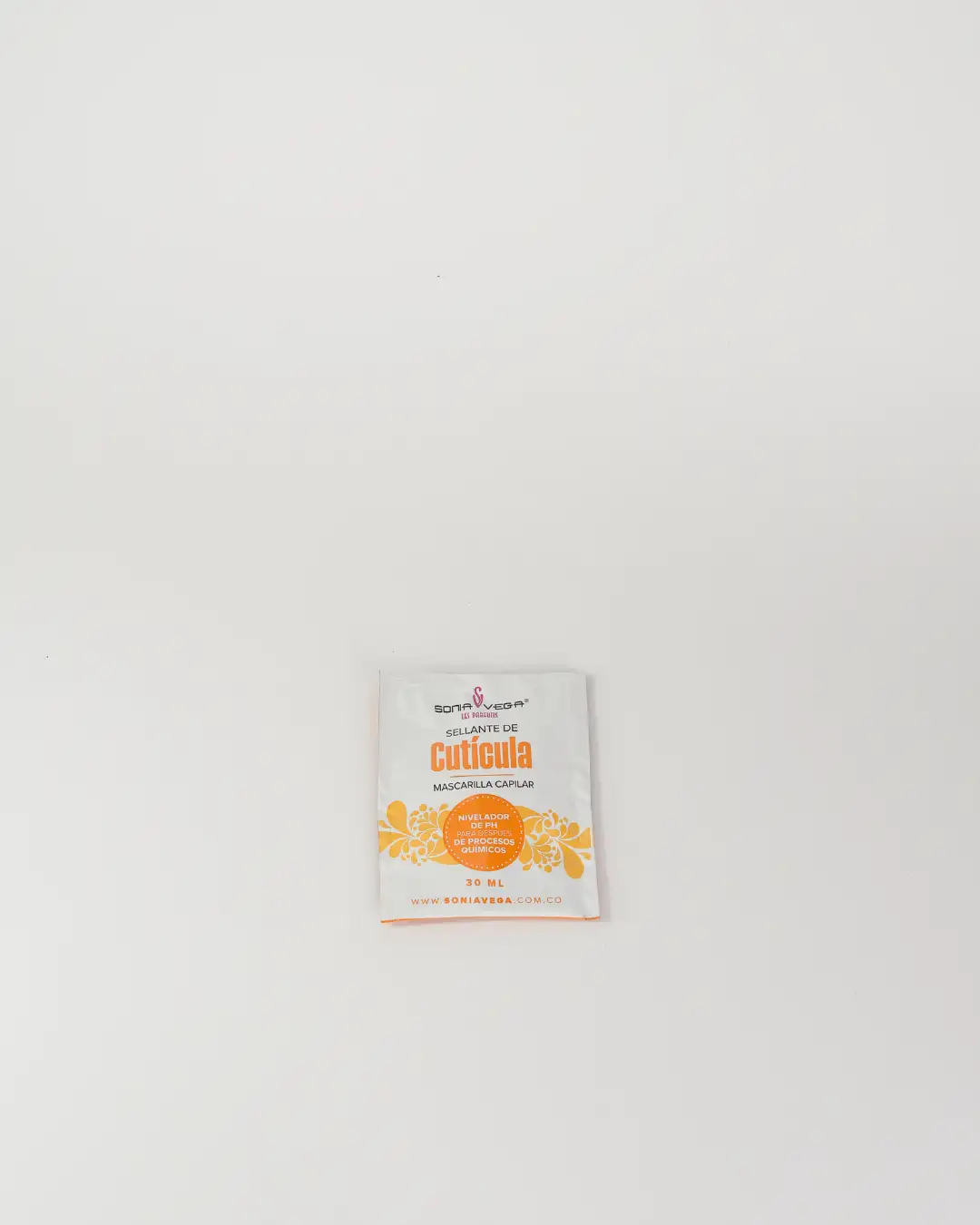 Mascarilla Capilar Sellante de Cutícula SONIA VEGA, logrando una reparación continua y un acabado sedoso de larga duración.