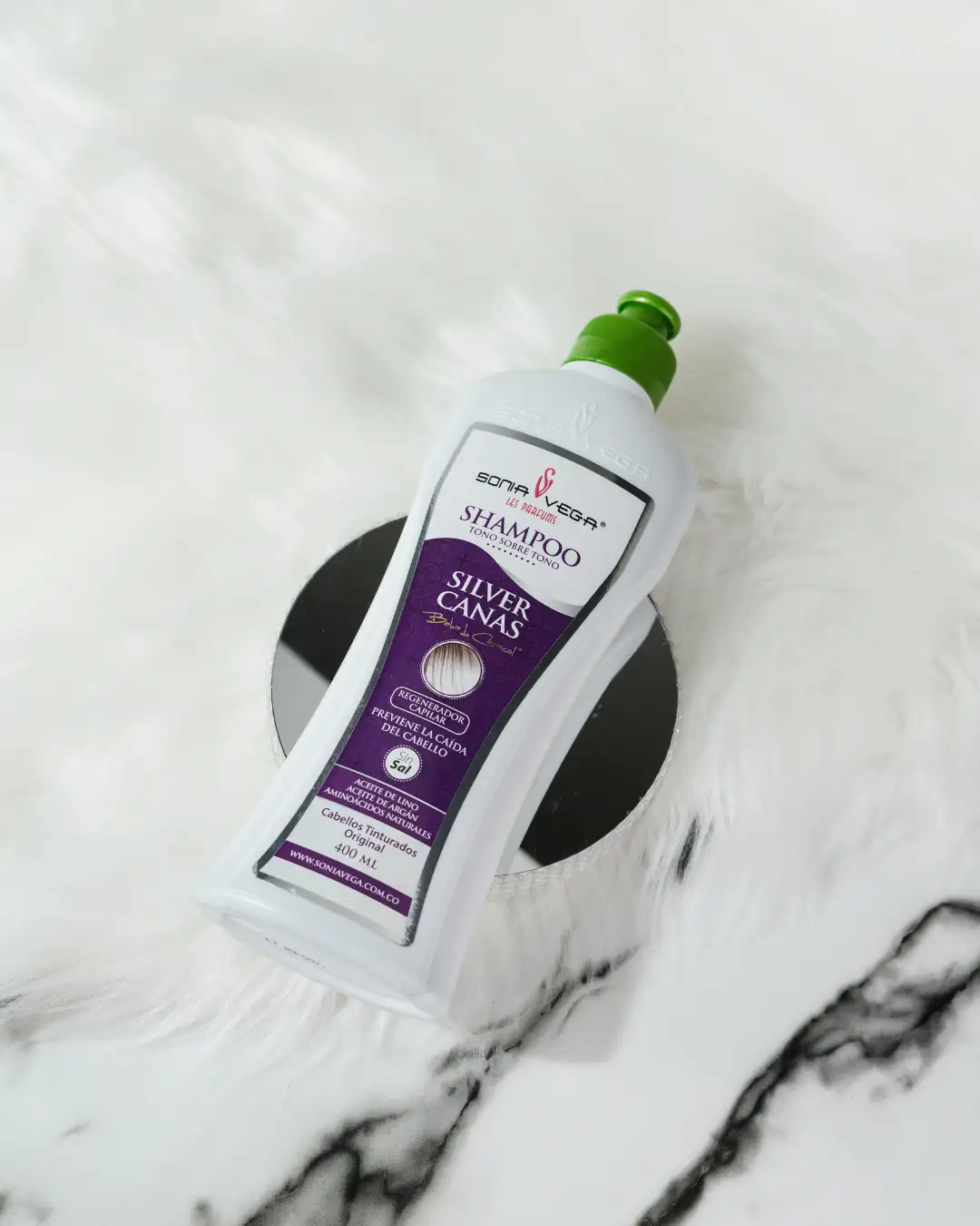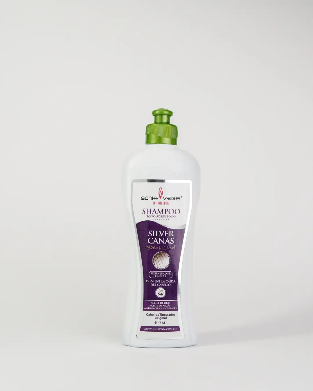 Intensifica el rubio extra claro de tu melena con nuestro Shampoo Tono sobre Tono Canas Silver SONIA VEGA LES PARFUMS®. Aporta brillo, suavidad y un sutil tono plateado para un look natural y sofisticado