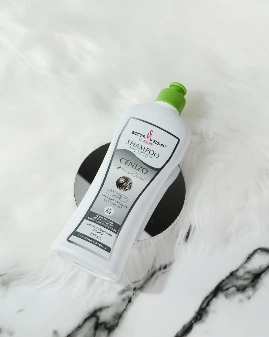 ¡Protege el color de tu cabello con nuestro Shampoo Tono sobre Tono Cenizo SONIA VEGA LES PARFUMS®! Hidrata, protege y realza el color, dejando tu cabello suave, brillante y con un tono ceniza hermos