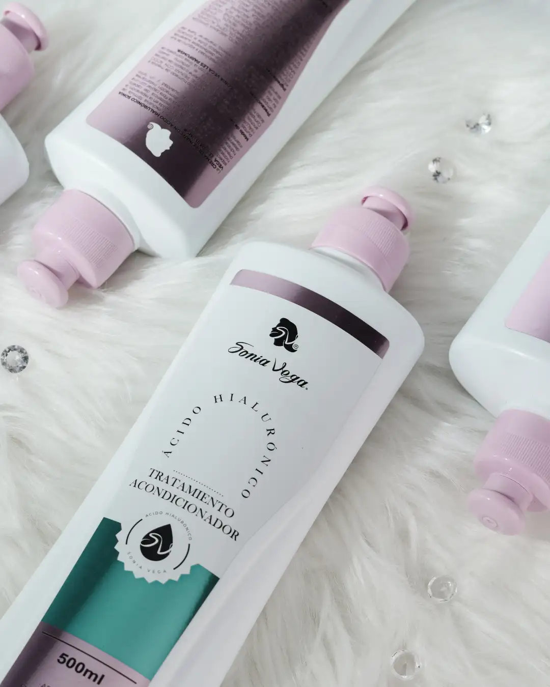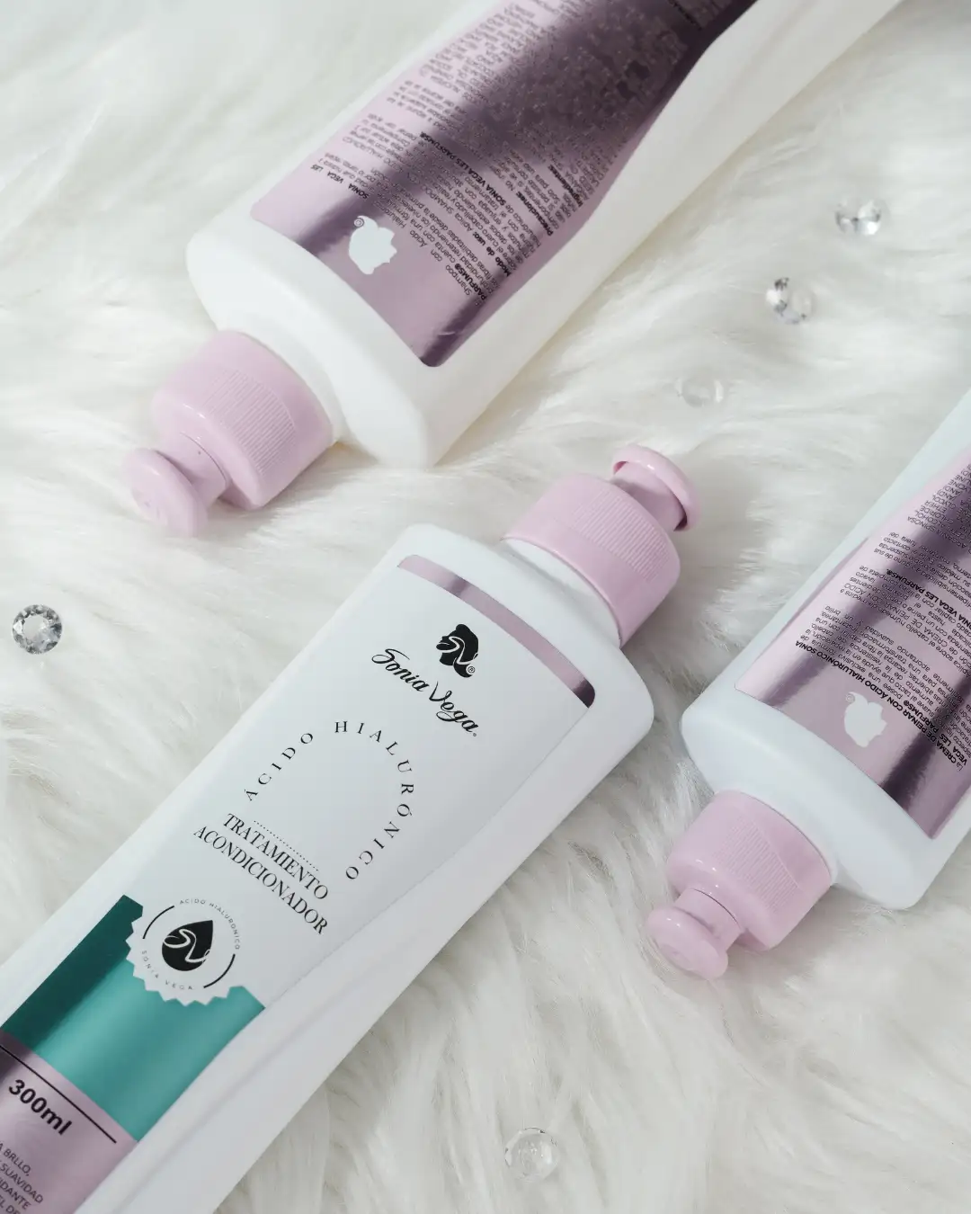 Shampoo con Ácido Hialurónico SONIA VEGA, logrando un ritual completo de hidratación y cuidado capilar.